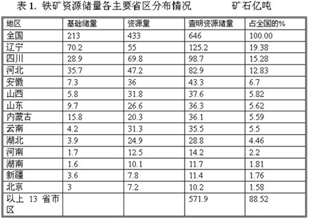 據(jù)了解,目前全國共有鐵礦區(qū)3637個,查明鐵礦石資源儲量646億噸。其中,基礎儲量213億噸,資源量433億噸。鐵礦在中國的分布較廣,在全國31個省市區(qū)均有分布,但相對集中在遼寧等13個省、市、區(qū),這些省、市、區(qū)目前的探明保有資源總量均在10億噸以上,共擁有鐵礦資源儲量571.9億噸,占全國資源儲量的88.52%。中國豐富的鐵礦資源為礦山設備的發(fā)展提供一個廣闊的前景。據(jù)調(diào)查顯示,鐵礦特別是新建鐵礦可以有力的帶動對重型板式給料機、顎式破碎機、圓錐破碎機、重型圓振動篩、濕式溢流型球磨機、水力旋流器、周邊傳動高效濃密機等一系列礦山機械的需求。