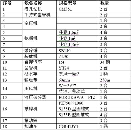 表:一座新建中小型巖石礦所帶動的主要設備需求表